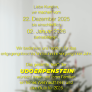 Wir machen vom 22. Dezember 2025 bis einschließlich 2. Januar 2026 Betriebsferien.