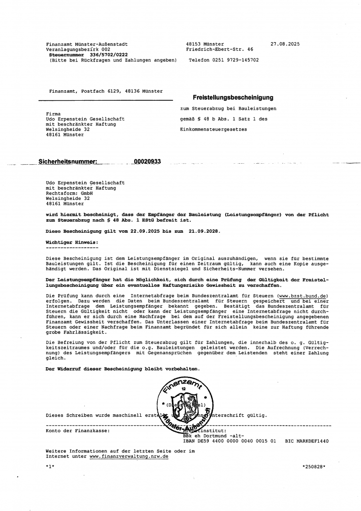 1969-2017 © Udo Erpenstein GmbH - Elektrotechnik | D-48161 Münster | Welsingheide 32 | Telefon 0 25 34 97 34-0 | RSS-Feed