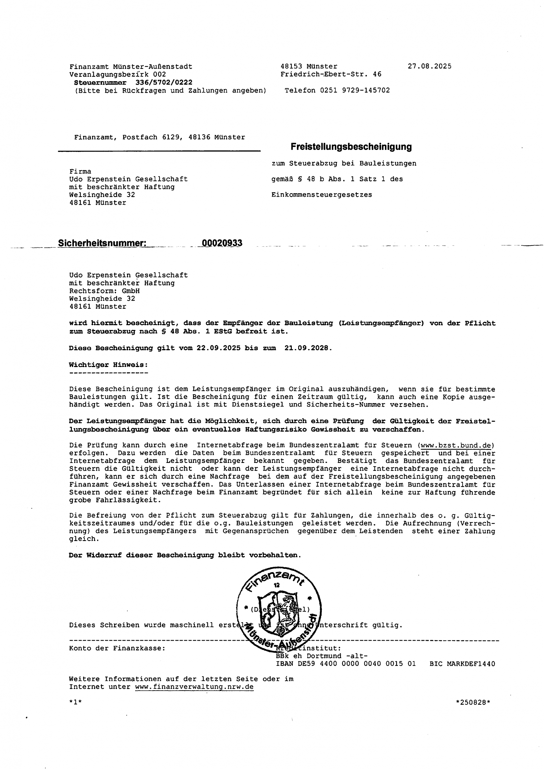 Du bist hier: Startseite1 / Firma2 / Zertifikate3 / Freistellungsbescheinigung2025
